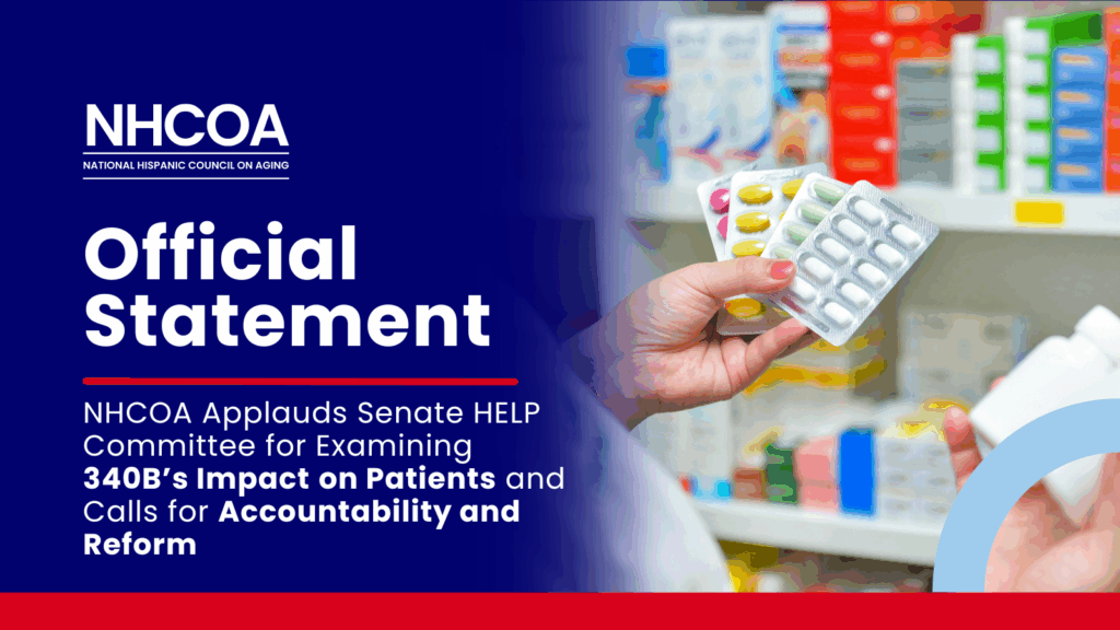 WASHINGTON (October 23, 2025) — The National Hispanic Council on Aging (NHCOA), the nation’s leading advocate for the health and economic well-being of Hispanic older adults, applauds the Senate Committee on Health, Education, Labor, and Pensions (HELP) for holding this important hearing to examine the 340B Drug Pricing Program’s growth and its impact on patients.